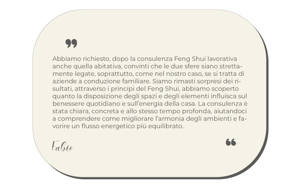 Il Feng Shui funziona davvero quando il consulente individua soluzioni mirate: non indicazioni generiche, ma interventi specifici costruiti sulla persona, sulla sua attività e sullo spazio che vive o utilizza.