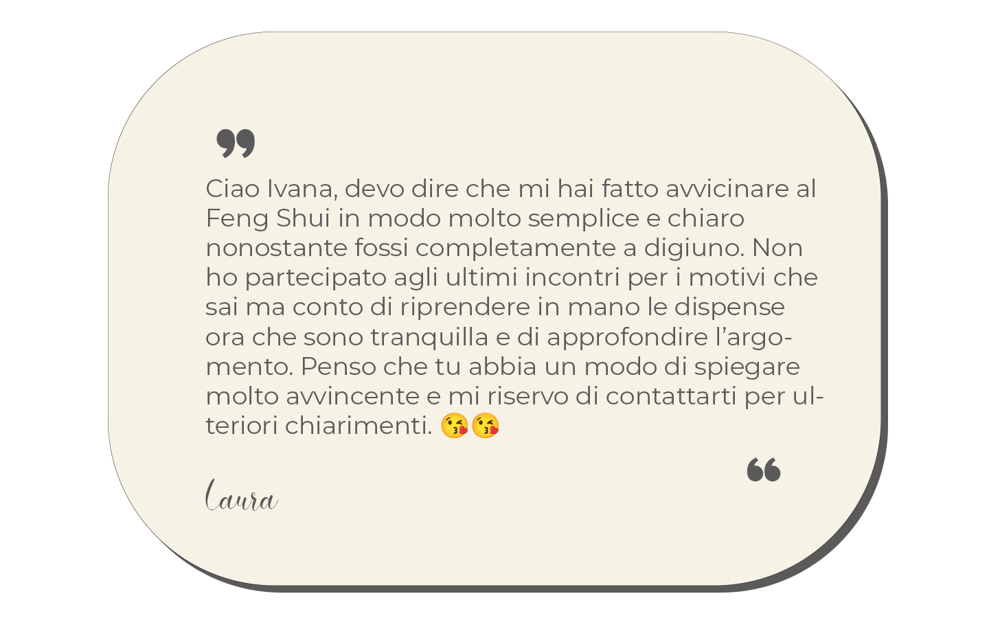 Il Feng Shui funziona quando il consulente trova le soluzioni adatte, non generali, semmai specifiche per la persona, per il suo lavoro e per lo spazio che utilizza. L’ascolto del cliente diviene la fase fondamentale di tutta la consulenza, senza l’ascolto attivo non è possibile comprendere le vere motivazioni del cambiamento che vuoi attuare; insieme in una relazione di fiducia e rispetto, faremo germogliare una nuova consapevolezza nel raggiungere i tuoi obiettivi.